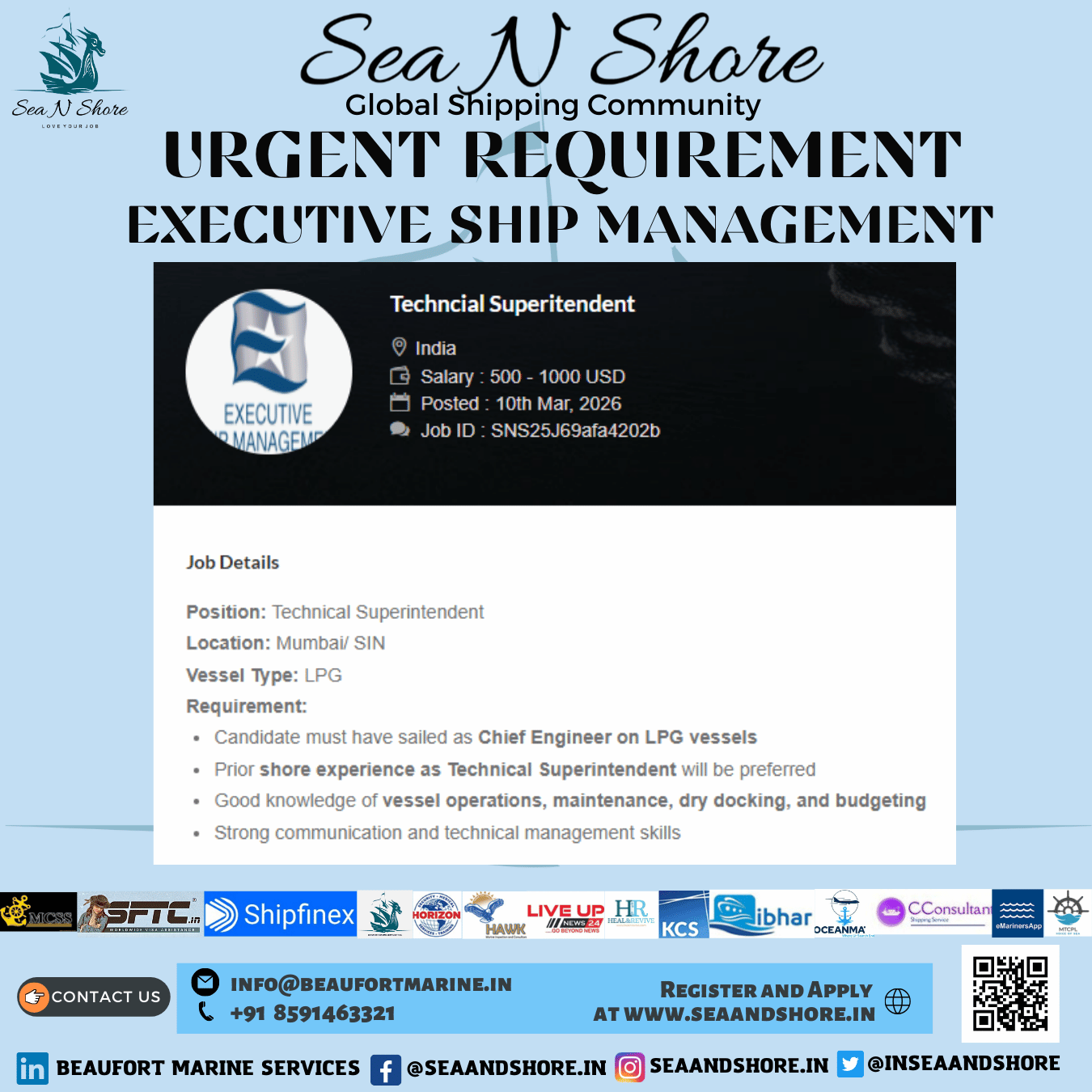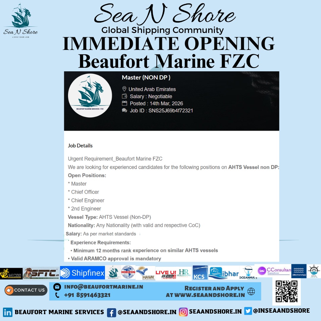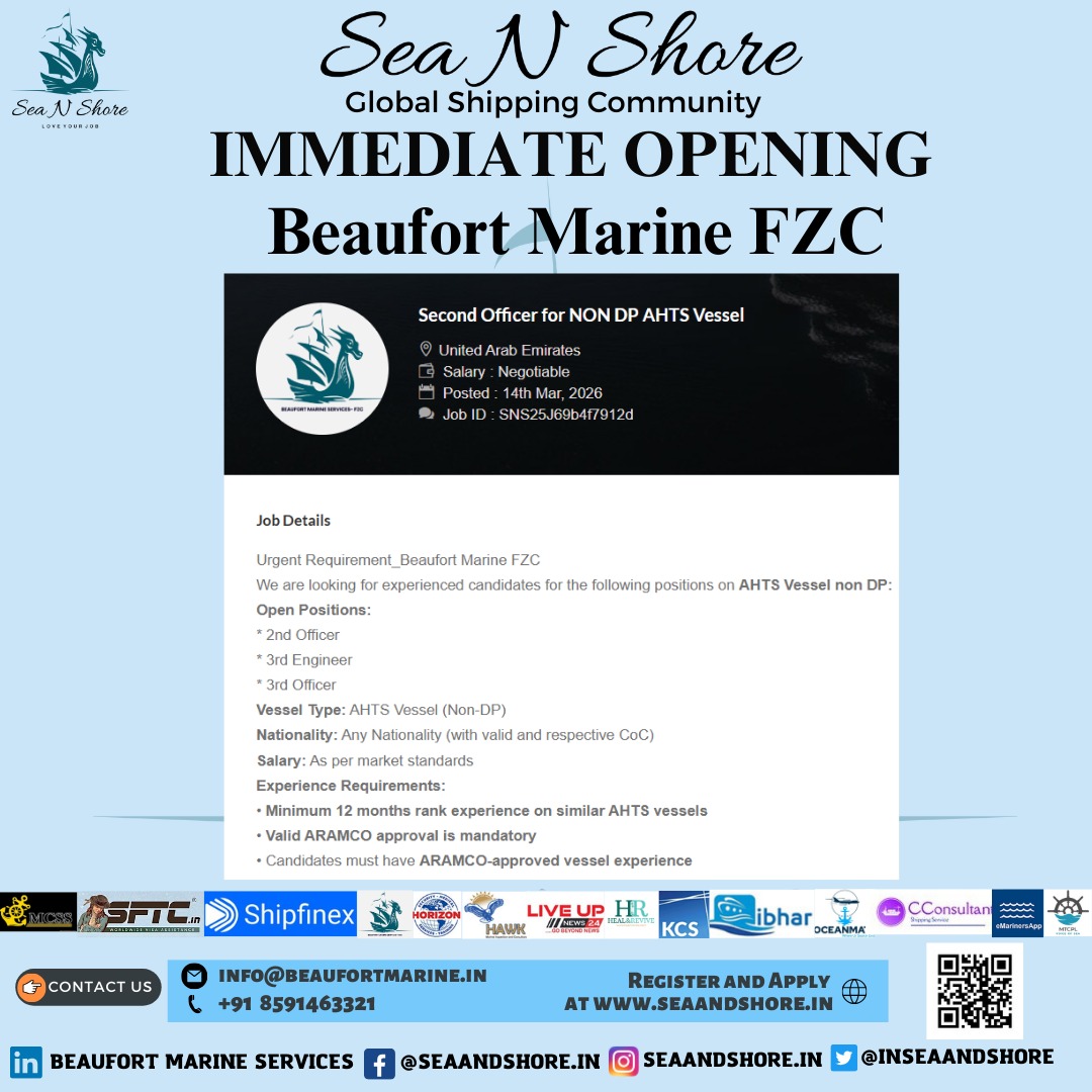 We at Beaufort Marine are proud to introduce our job portal www.seaandshore.in for seafarers, shore staff and marine consultants to enable shipping companies to get the right person for the right job at the right time.